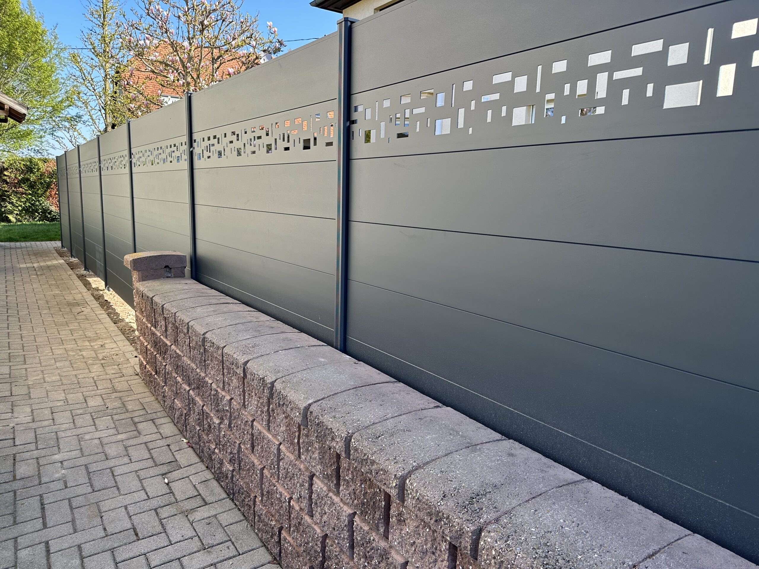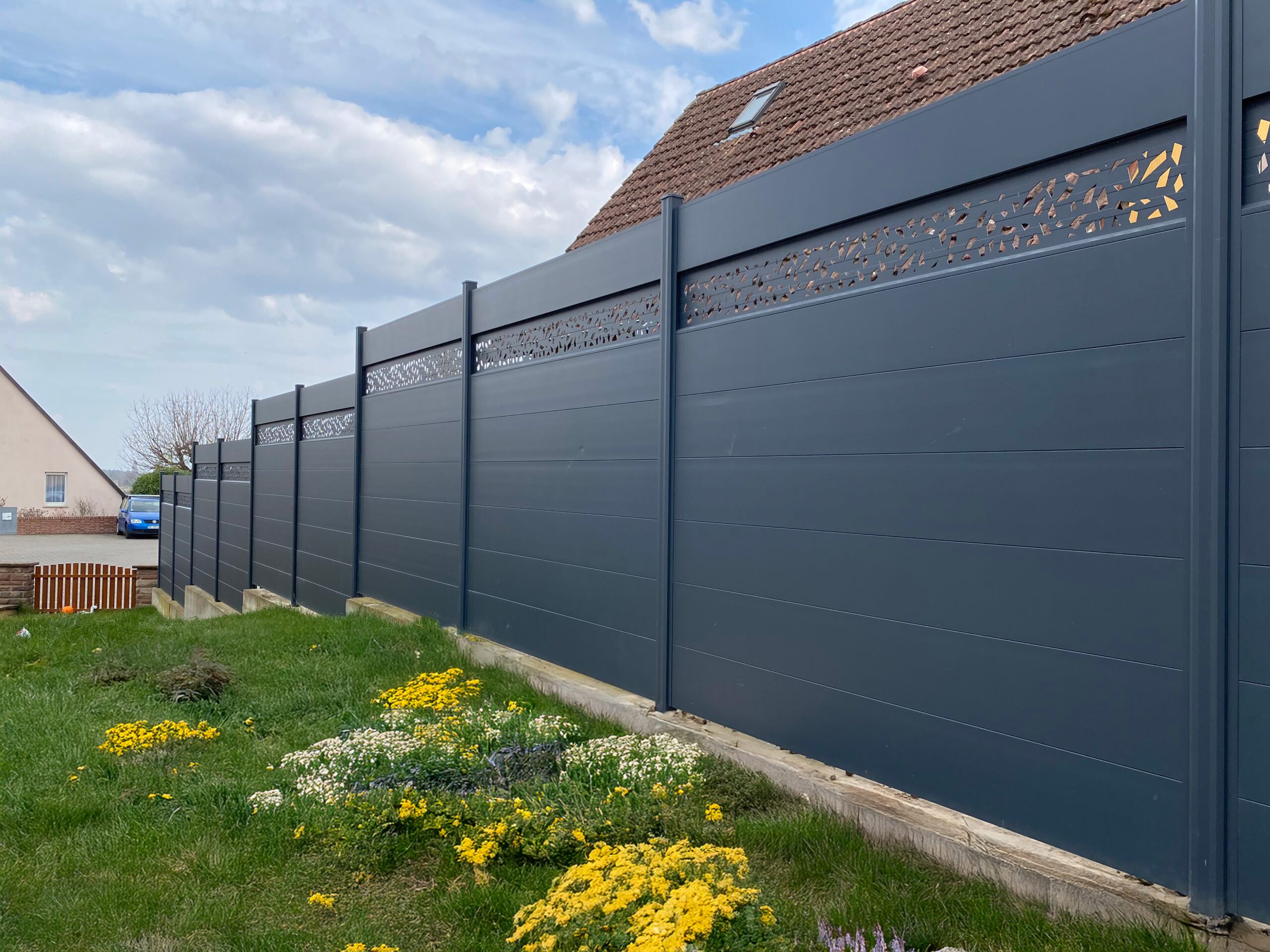 La clôture pleine IVD est en aluminium et sur-mesure. Rien de tel pour rester à l’abri des regards ! Disponible sur mesure, le remplissage en lambris aluminium 200 mm ou 80 mm est de mise dans cette collection. Deux sections de traverses sont également disponibles: 60 x 40 ou 94 x 50 mm. Vous pouvez également insérer une boîte aux lettres dans un des panneaux. Hauteur et largeur 100% sur-mesure !