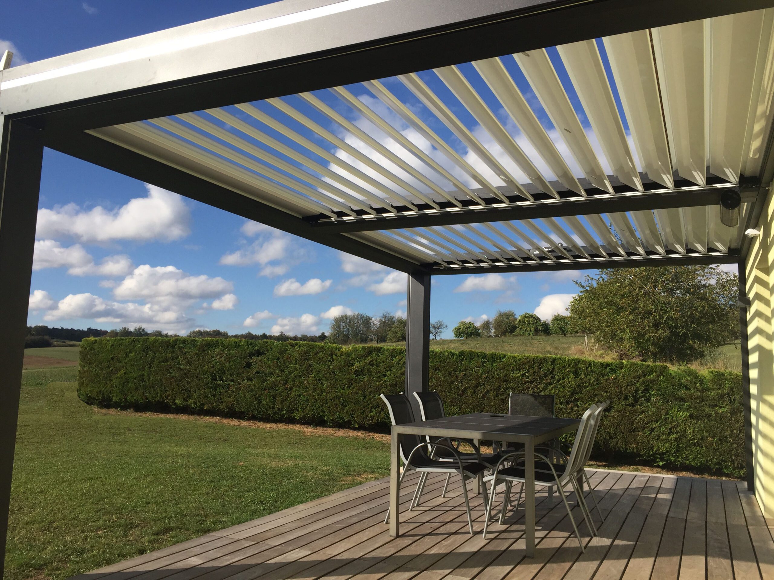 Grâce à son système bioclimatique, vous êtes protégé du soleil et de la pluie, avec une gestion climatique automatisée pour un confort optimat.